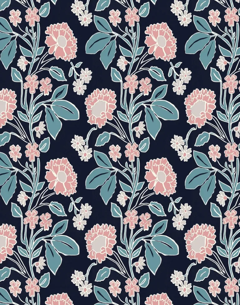 Created honoring the traditional techniques of lace fabrication and woodblock, this is a wallpaper for seriously sumptuous, heritage-loving homes. Paying homage to the bygone artistry of Honiton Lace and brings it up to date with an emboldened color palette.