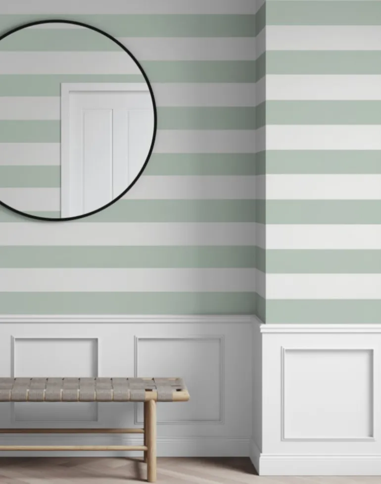 The brave follow the prompt given by the name of the wallpaper and set the wallpaper horizontally. The block stripe comes in a nice Duck Egg blue.