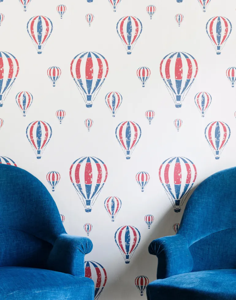 Sometimes it’s lovely to have your head in the clouds, to dream, and let your imagination run. After all, we need a bit of escapism now and then. Our Hot Air Balloon wallpaper has a painterly feel to the touch thanks to the surface print technique we love to use, and is available in two colors – midnight sky, or red/white/blue. Up, up and away!
