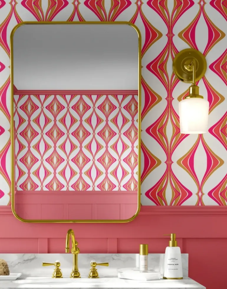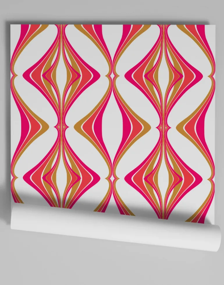 The Hourglass wallpaper is a bold geometric design that combines mid-century inspiration with a modern twist. The repeating hourglass shapes create a rhythmic, flowing pattern that draws the eye, making it a striking choice for feature walls or full-room decoration. Its symmetrical design adds structure while the fluidity of the shapes introduces a sense of movement, perfectly balancing elegance and versatility.