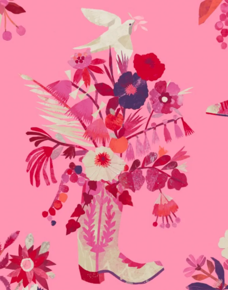 Multi-colored illustration on a pink background