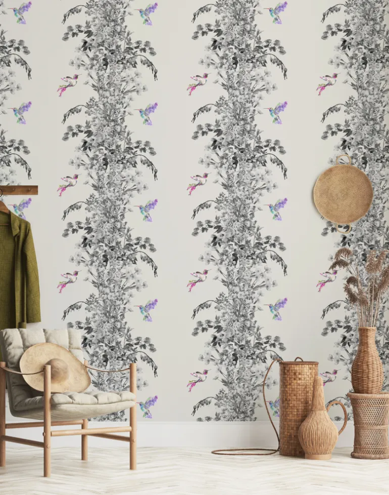 Our humming bird design is one of our best sellers and a definite favorite from our wildlife botanical range, this fabulous hummingbird wallpaper would create the perfect statement wall in a bedroom, living room or even kitchen – the possibilities are endless!