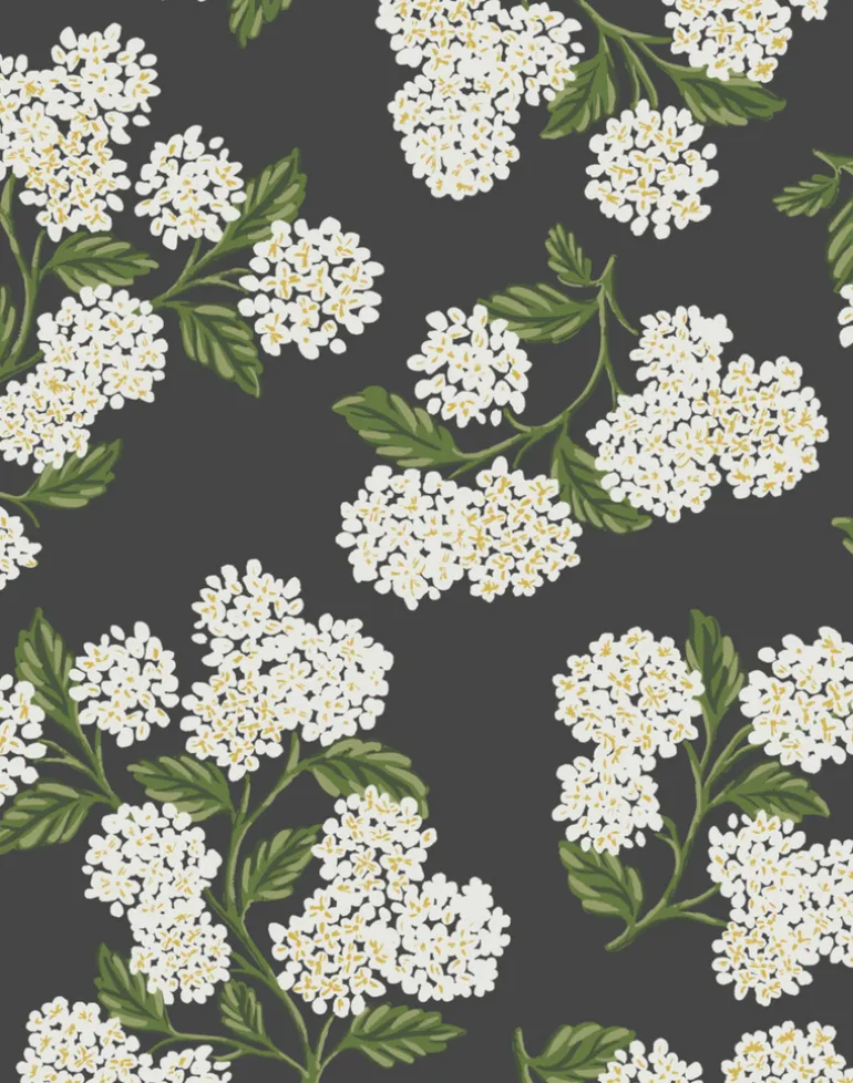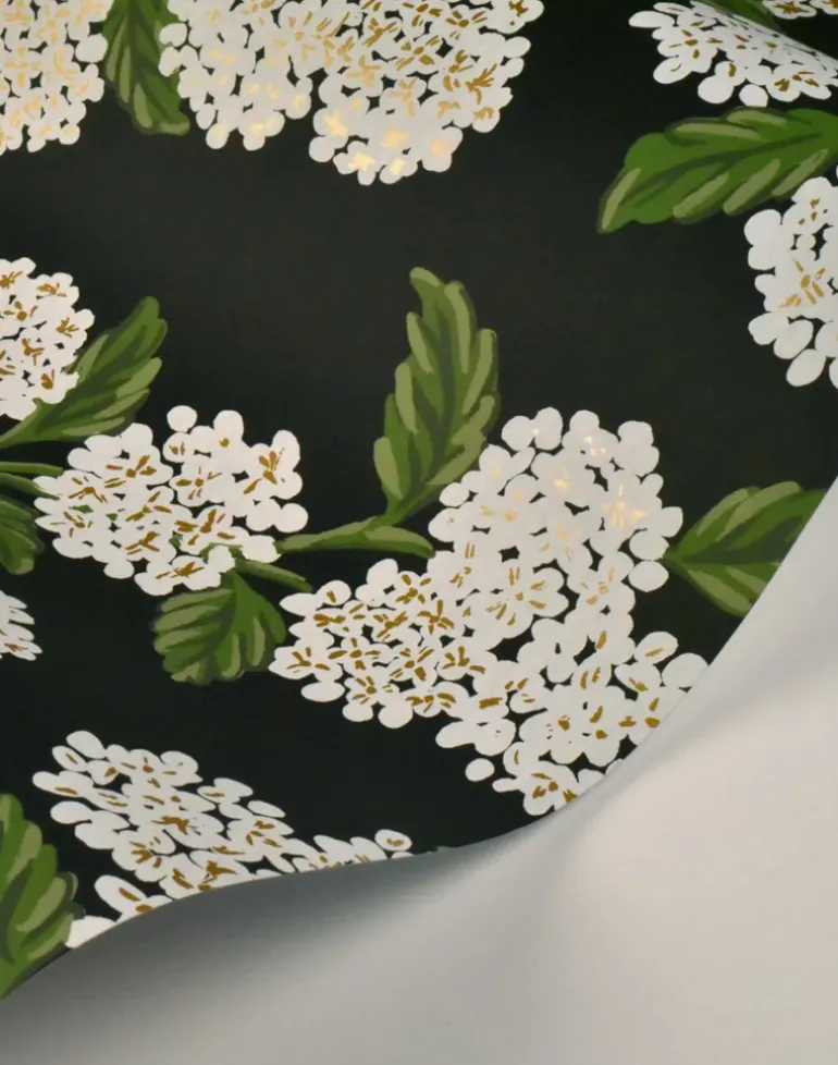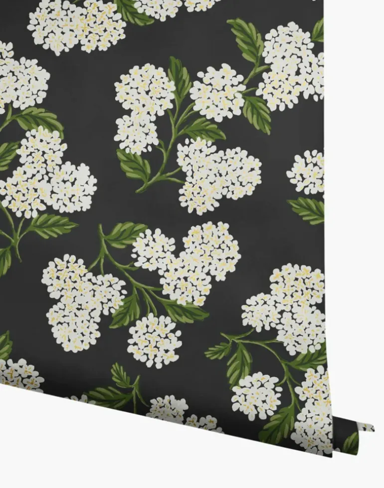 Clusters of hydrangeas are an elegant and timeless way to bring a garden into your space. This wallpaper is screen printed and comes in 27 inch rolls with a 25.25 inch repeat.