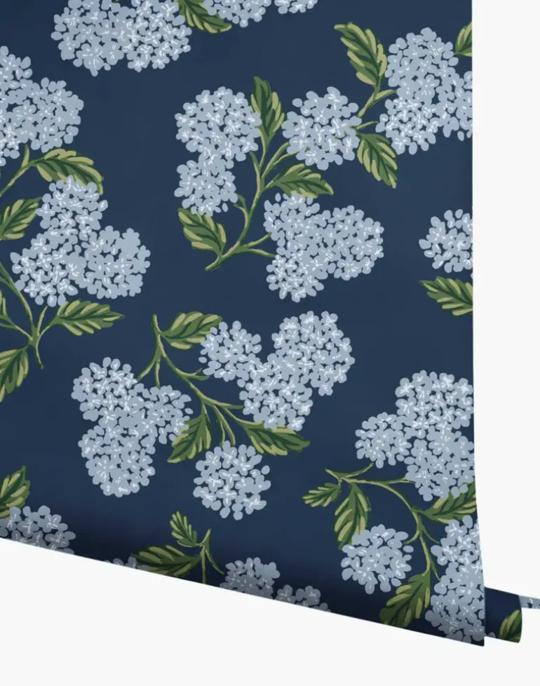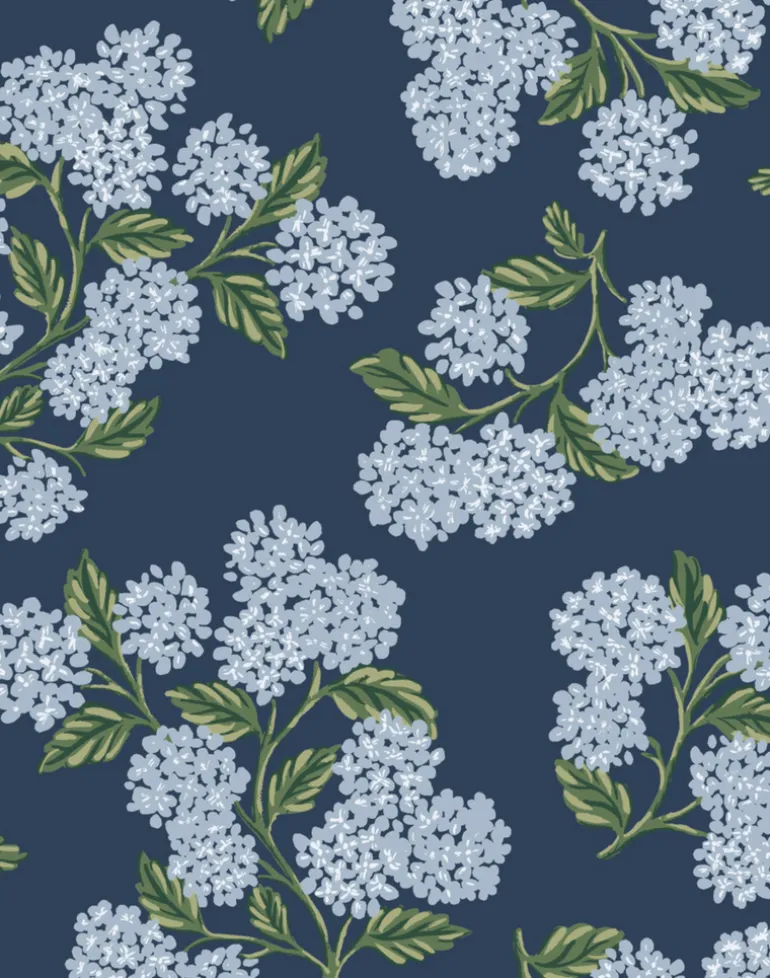 Clusters of hydrangeas are an elegant and timeless way to bring a garden into your space. This wallpaper is screen printed and comes in 27 inch rolls with a 25.25 inch repeat.