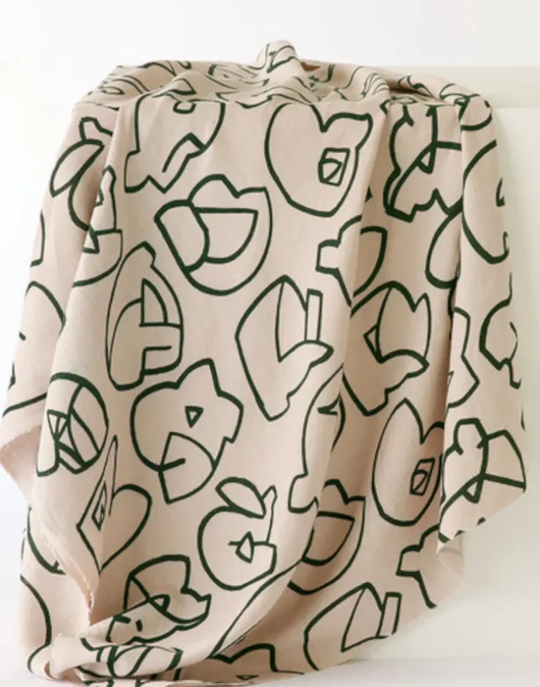 Hand dyed and printed with reactive dyes onto a textured linen. Perfect for curtaining, soft furnishing or domestic upholstery.
