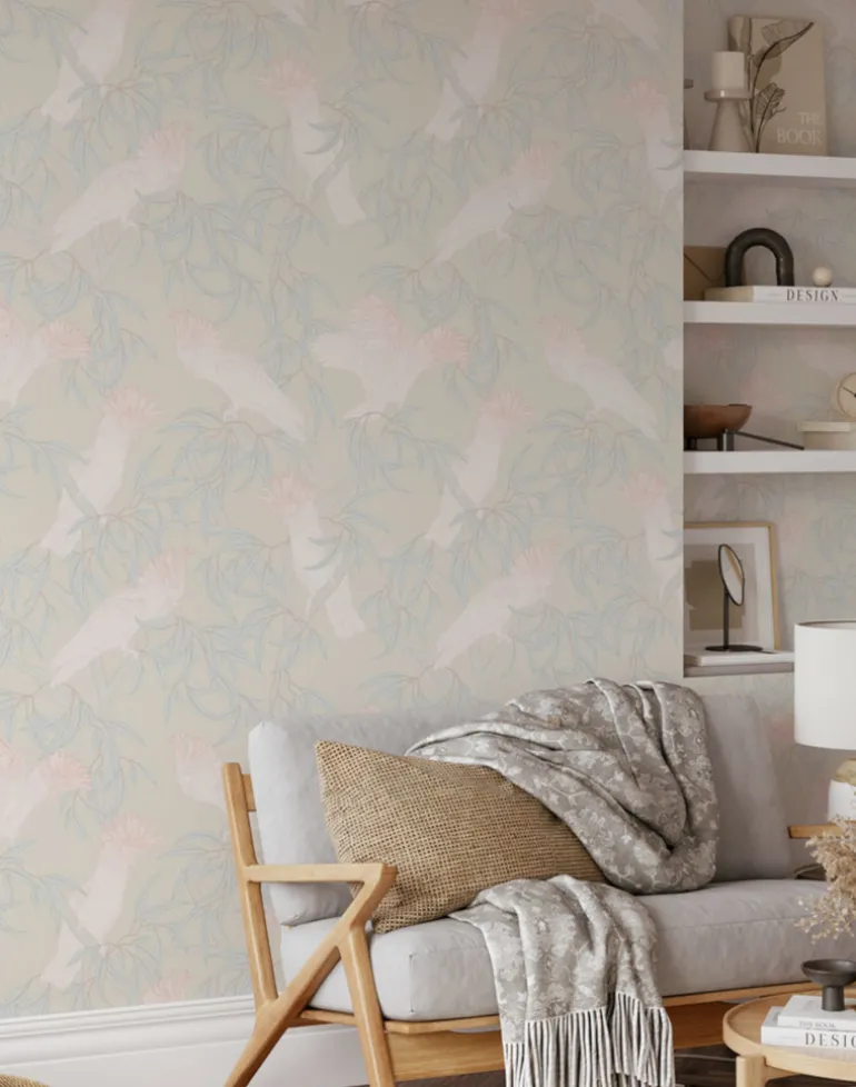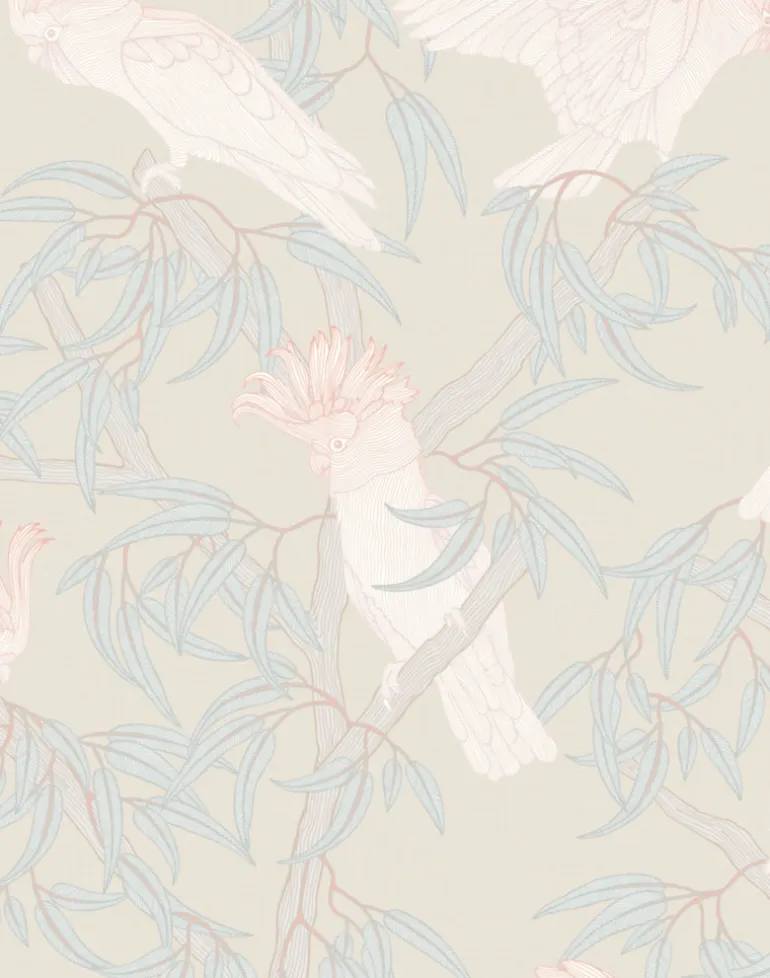 Named in honor of Major Sir Thomas Mitchell, who wrote, “Few birds more enliven the monotonous hues of the Australian forest than this beautiful species whose pink-colored wings and flowing crest might have embellished the air of a more voluptuous region.” The ‘In the Trees’ design captures a moment of ‘quiet’ in the trees filled with a Major Mitchell clan. In the Trees design from Patricia Braune’s Australian Lines Collection.