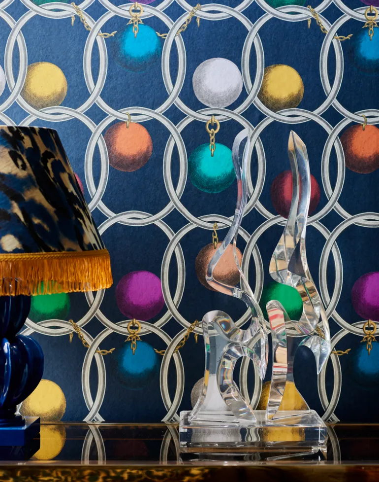 Vibrant and elegant, INCANTENATO entrances with its bewitching arrangement of interwoven metallic halos adorned with resplendent, suspended orbs. Set against a canvas of five captivating hues — Blu, Grigio, Limone, and Rosa — the metallic rings elegantly entwine, orchestrating a symphony of form and color. Each radiant globe suspended between the halos adds a touch of fascination and intrigue, conjuring a spell of wonder upon all who encounter its enchanting presence.