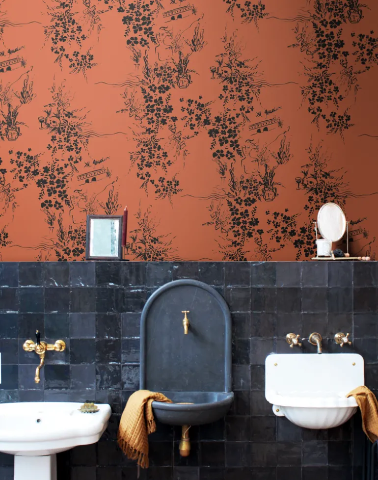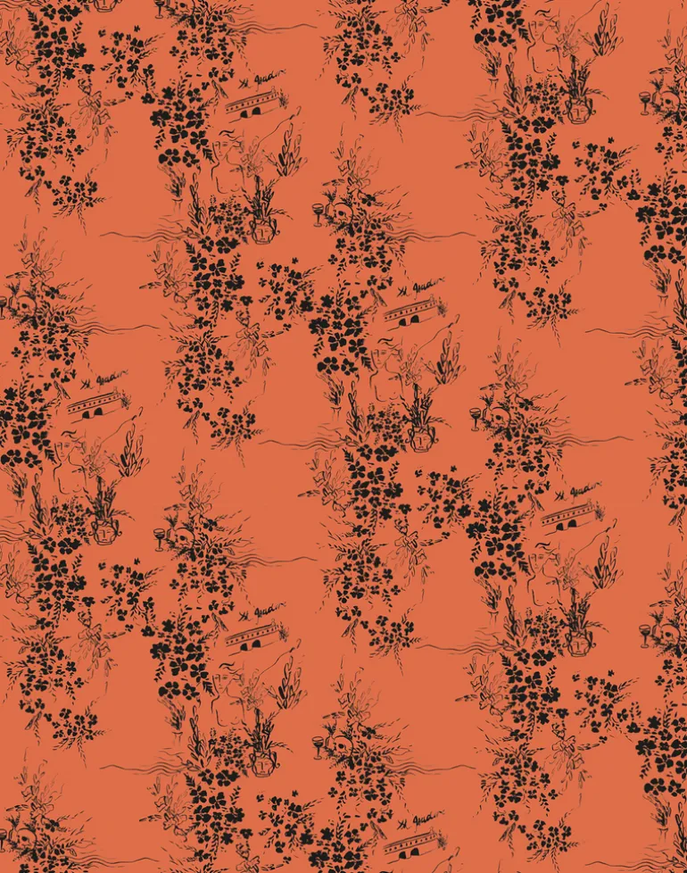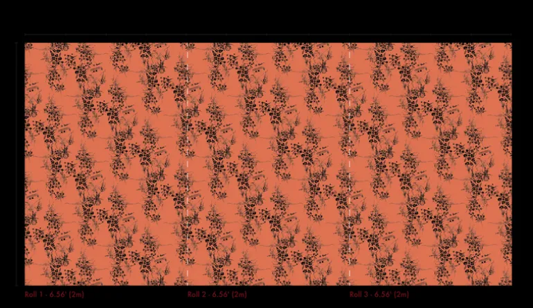 This wallpaper touches on fragments of memories, intertwined with a stylized interpretation of the unruly rambling bougainvillea. ‘Isadore’ is a tale entirely fabricated by the artist, Ronelle Pienaar Jenkin.