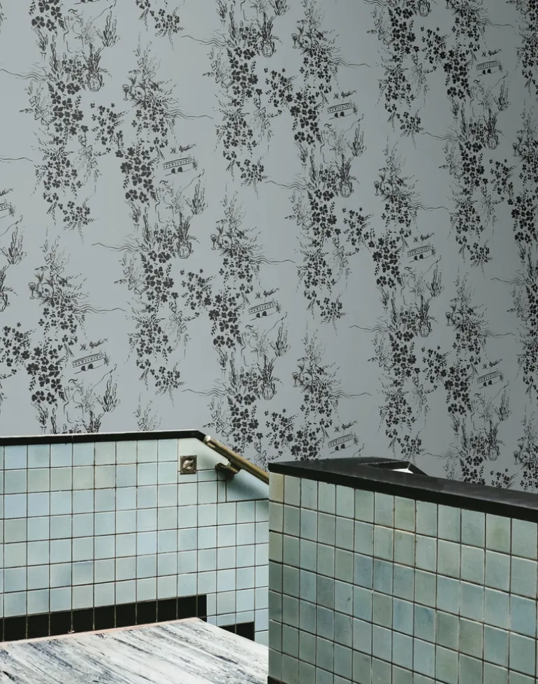 This wallpaper touches on fragments of memories, intertwined with a stylized interpretation of the unruly rambling bougainvillea. ‘Isadore’ is a tale entirely fabricated by the artist, Ronelle Pienaar Jenkin.