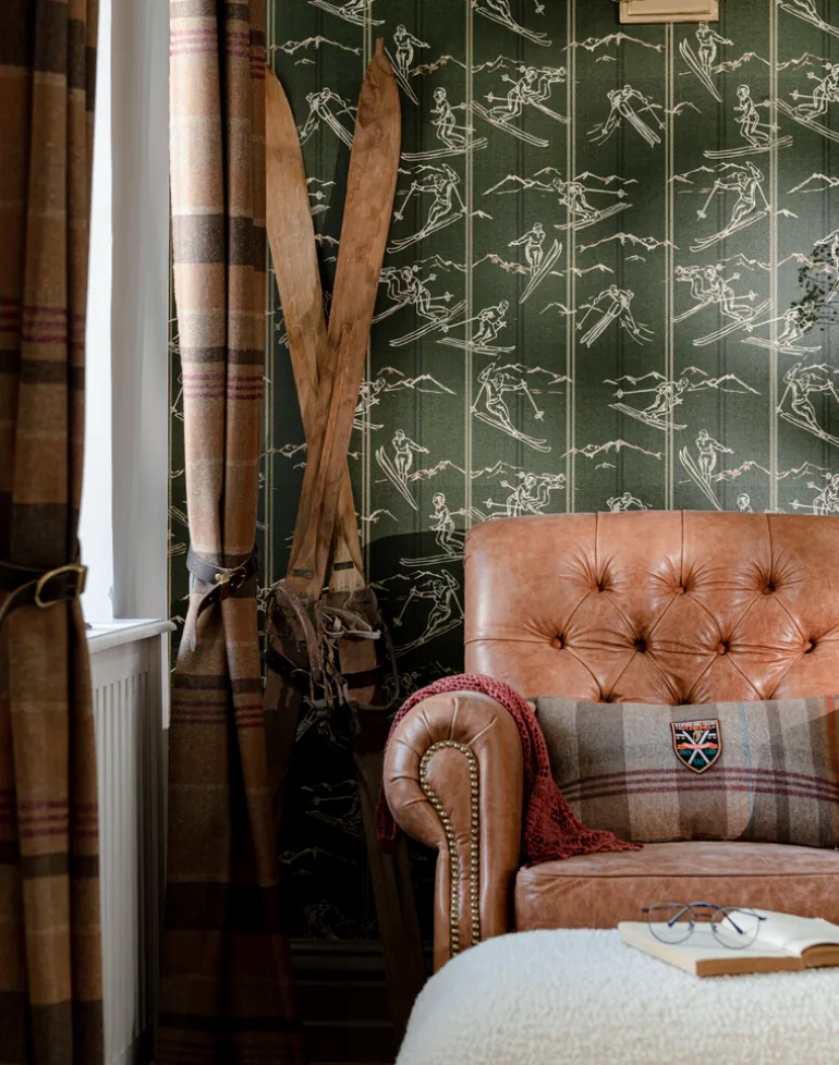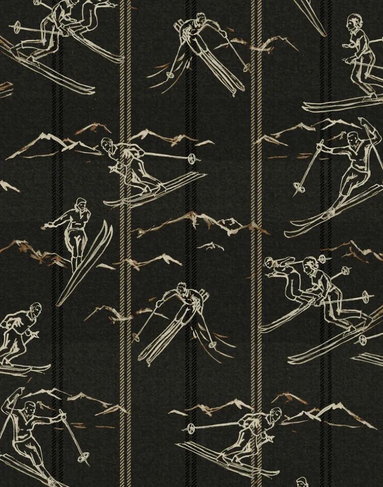 Named after a ski resort village in western Austria’s Paznaun Valley, ISCHGL sees host of athletic skiers swoop across this wallpaper, which is simple in its execution yet bursting with energy. With the wind in their faces, they swish, turn and glide, leaping and jumping down the snow-capped mountain.