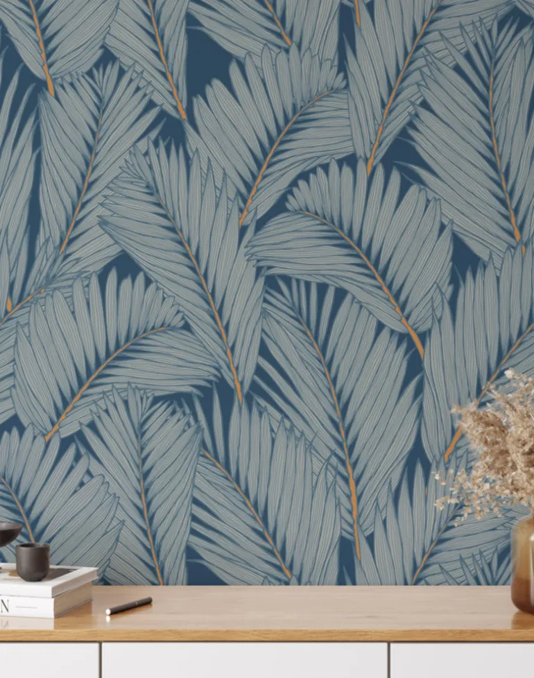 Woven illustrated fronds creates a classic and luxurious quality to this intricate design. Bringing together a tropical feel with an elegant touch. Island Frond design from Patricia Braune’s Paradise Lines Collection.