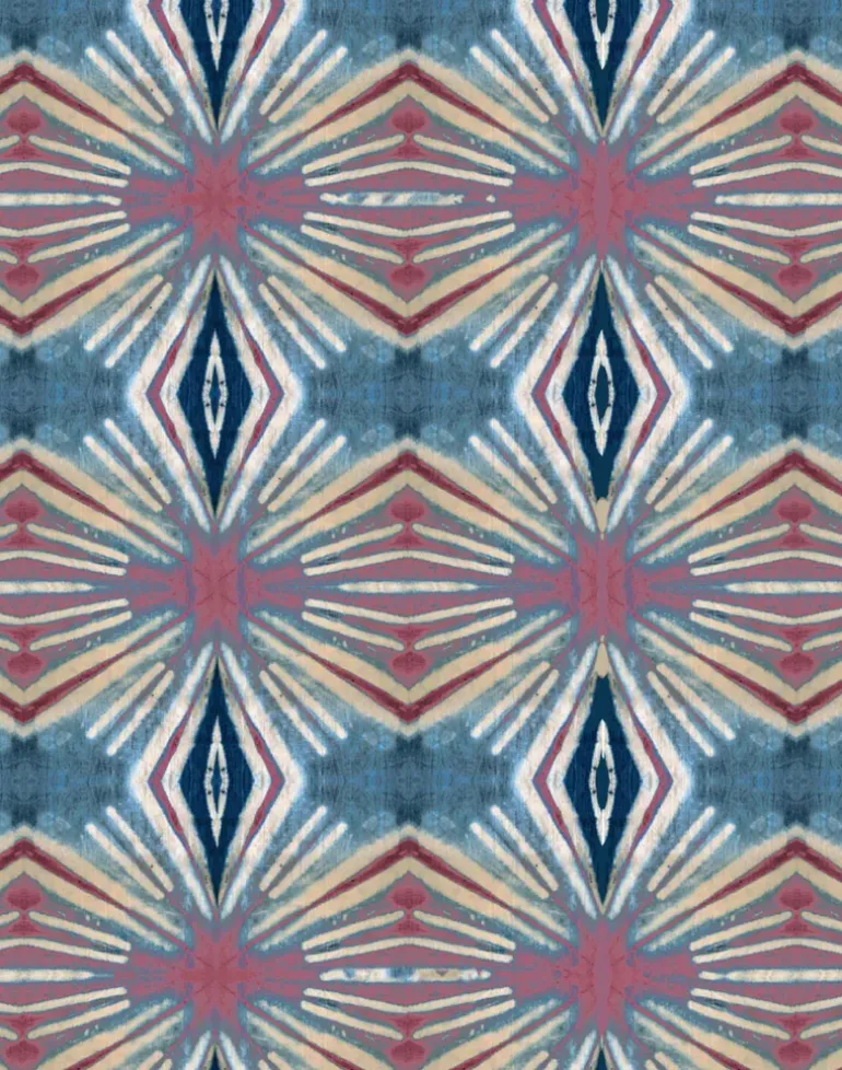 Inspired by the brilliance of Mother Nature, the magic of India, and the beauty of ancient Japanese crafts, Louise designs a new Tatie Lou collection of original prints annually. Created through a mixture of shibori dyeing, hand and digital drawing, and painting, each signature print is digitized and transformed into a suite of different colorways before being applied to wallpapers & fabrics.