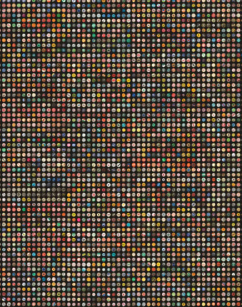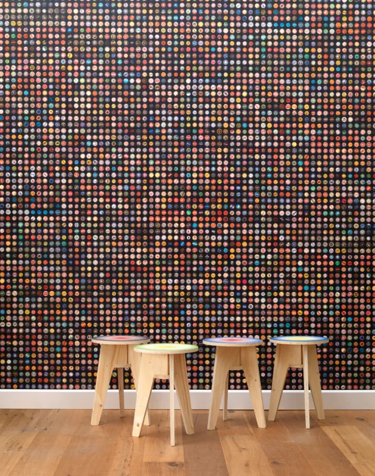 Hundreds of bottle caps make up this kitschy wallpaper.Design by artist, Jeanine Eek Keizer.