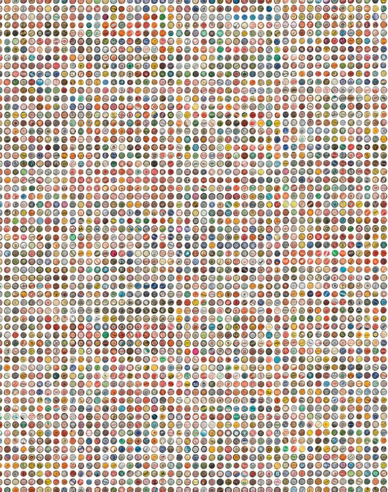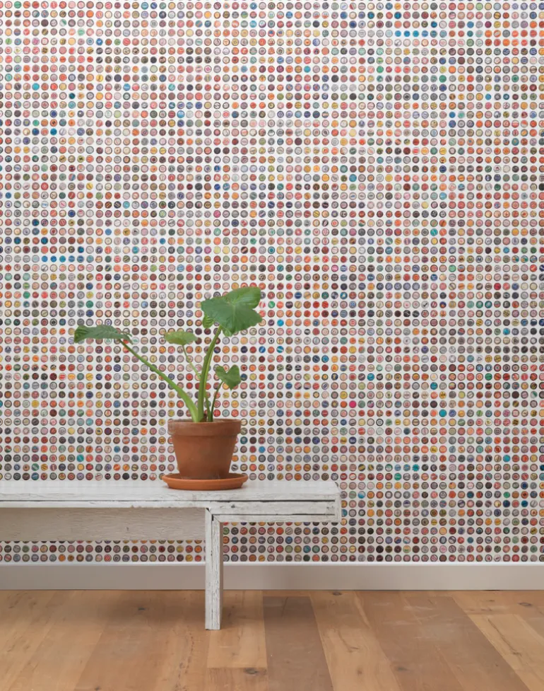 Hundreds of bottle caps make up this kitschy wallpaper.Design by artist, Jeanine Eek Keizer.