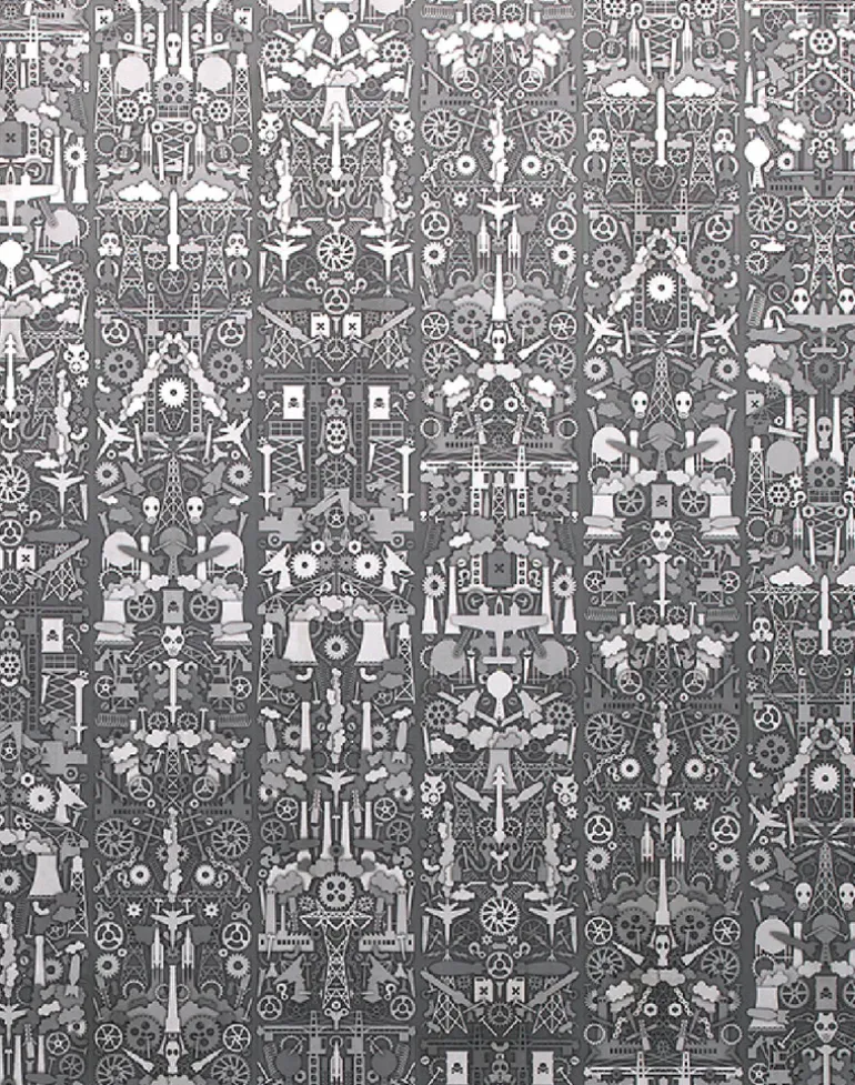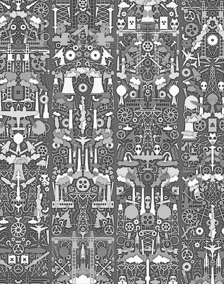 The icons for Industry were designed in 2008 in response to the installation Farm (ZZM) and the Bavarian collection (Moss). In contrast to the seemingly ‘peaceful’ farm themes, Industry was very confrontational, with bombs, artillery shells, nuclear power plants, gas masks and missiles.