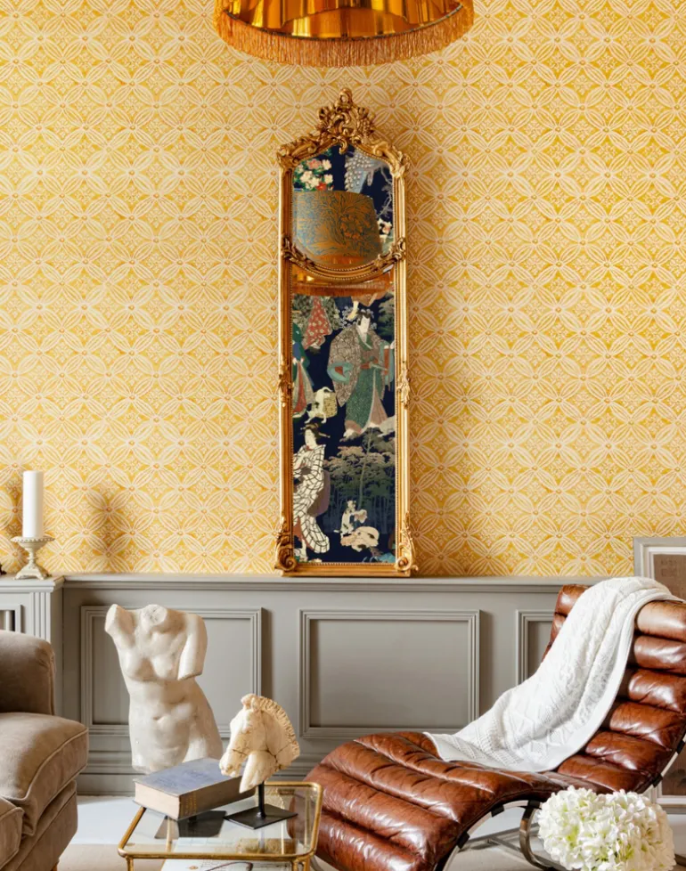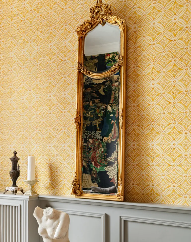 Roll up your sleeves and try your hand at the art of Kalamkari block printing, a technique native to Persia and India. Inspired by the colors of natural dyes, our KALAMKARI wallpaper comes in vibrant Citrus yellow, neutral tone Angora and soft green Jade, each simple pattern interspersed with pale shades and created to complement other designs in The Curator’s Cabinet collection. With a humble, handmade feel, the rounded shapes and gentle floral detailing almost become a plain when used across large areas, a quietly decorative print that takes on a distinctly eastern personality the closer you examine it.