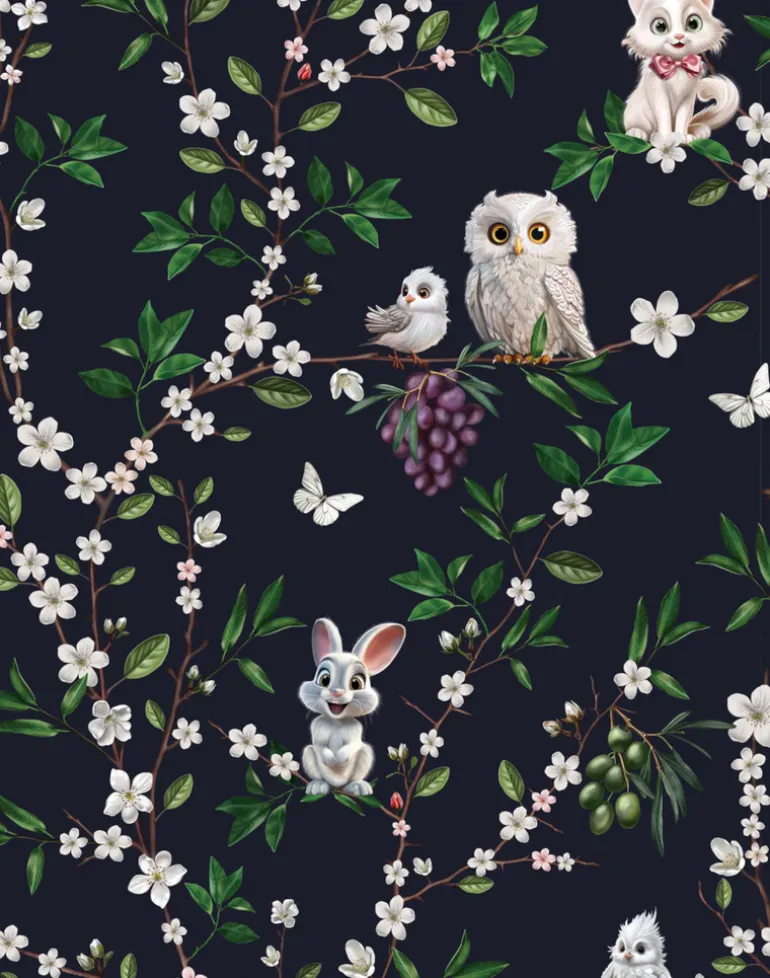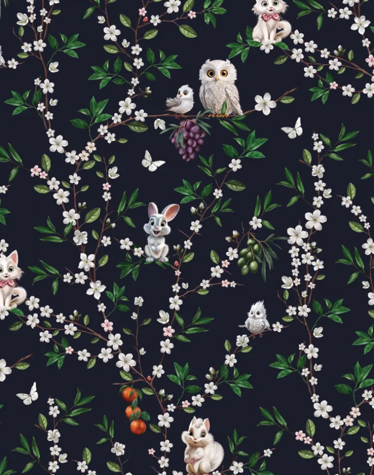 Every element in each design has been originally painted by hand in oil on canvas then digitally printed onto wallpaper and fabric using top quality manufacturers in the UK.