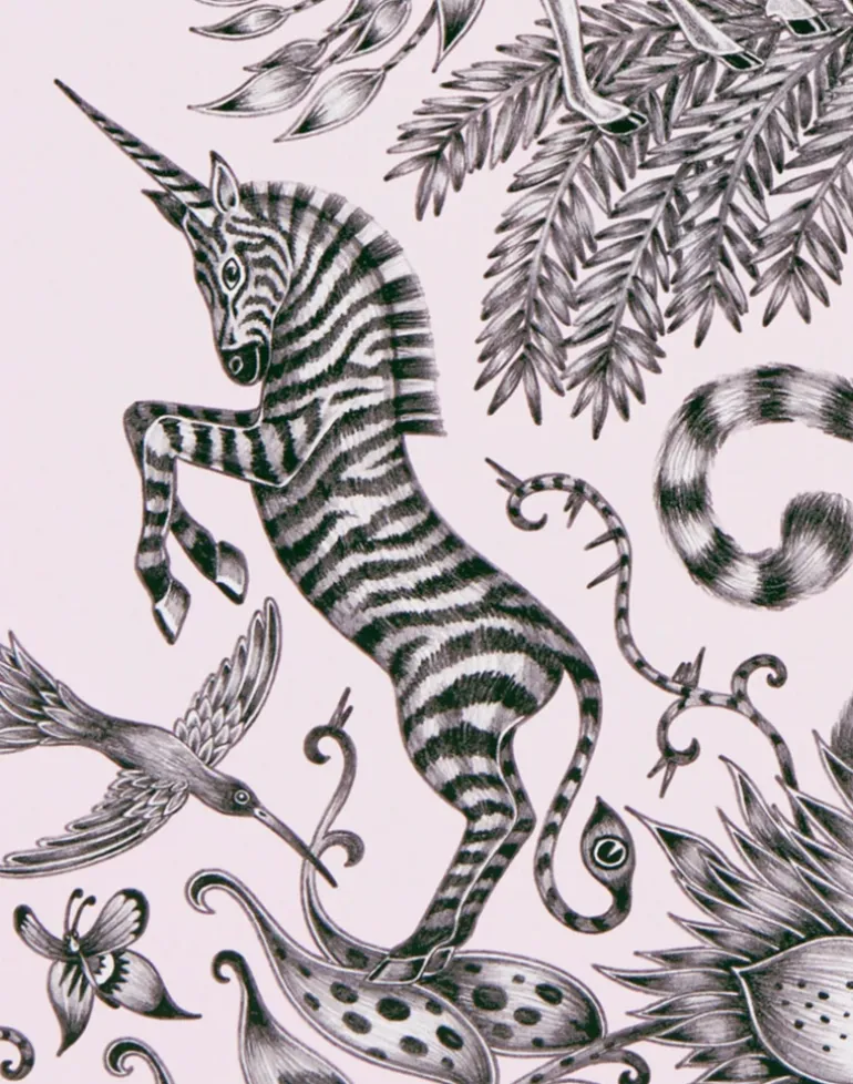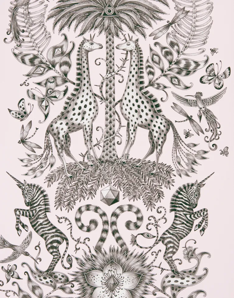 The Kruger Wallpaper is part of our magical Animalia collaboration with interior experts Clarke & Clarke. This design is inspired by an amazing safari adventure, and features a fantastical array of creatures and foliage. Channel the exoticism of the wild with the intricate hand-drawn creatures and wildlife, set upon a soft pink background.