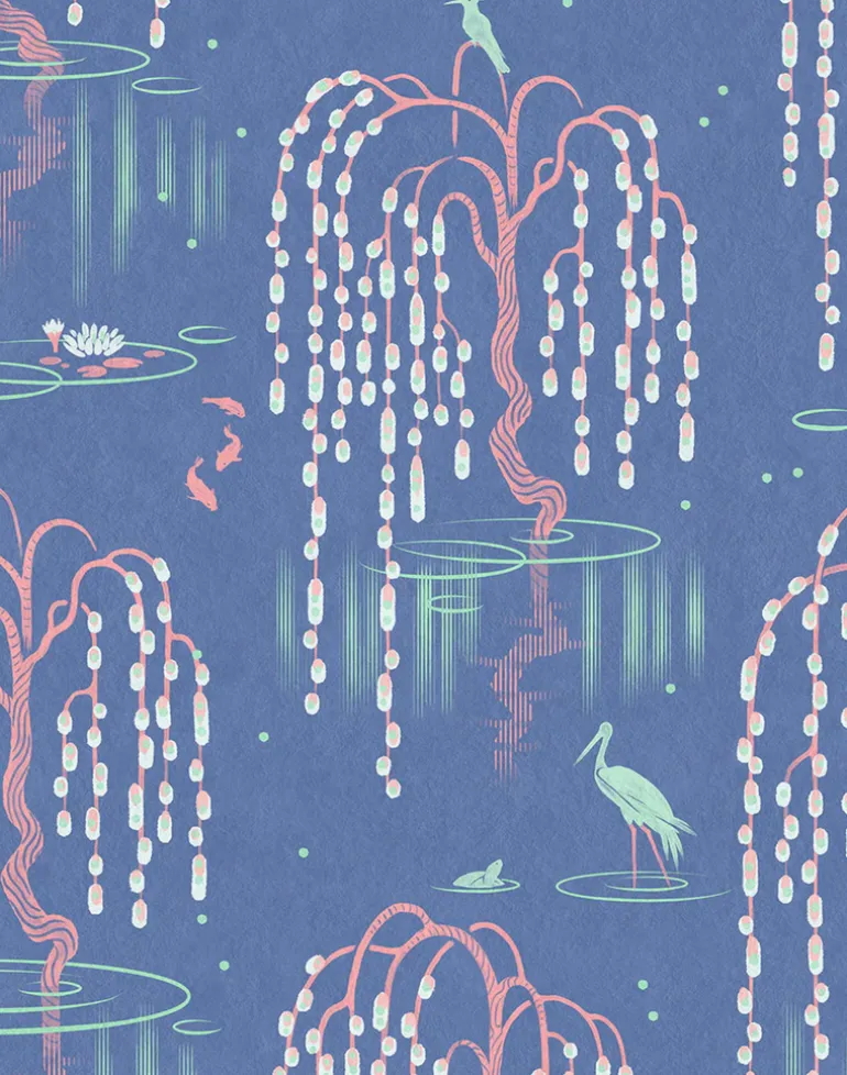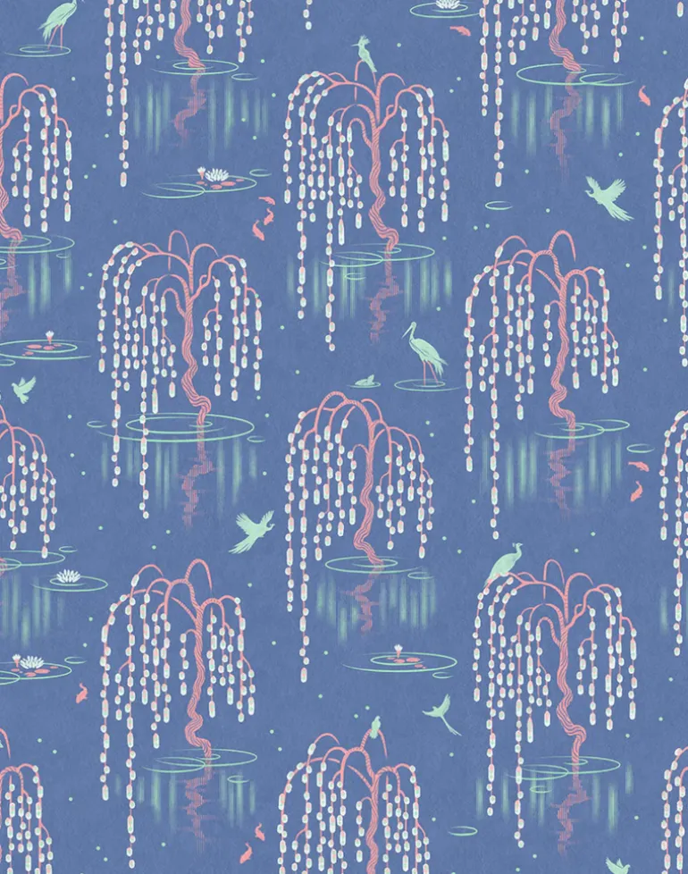 Inspired by the Japanese gardens of Holland Park and featuring delicate illustrations of cherry blossoms, lotus flowers, exotic birds and koi carp. Printed on luxuriously textured paper with a subtle and sophisticated sheen, create an oasis of calm that transports you to watercolor world.