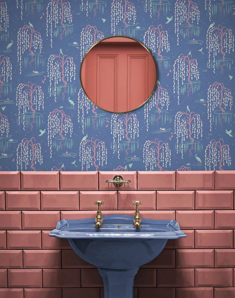 Bioluminescent Blue – this works particularly well as a bathroom wallpaper with a vibrant blue base and accents of pink, green and cream.