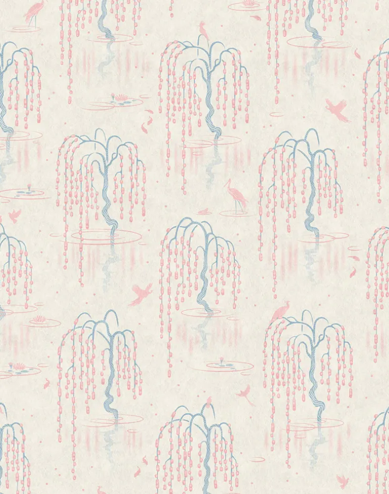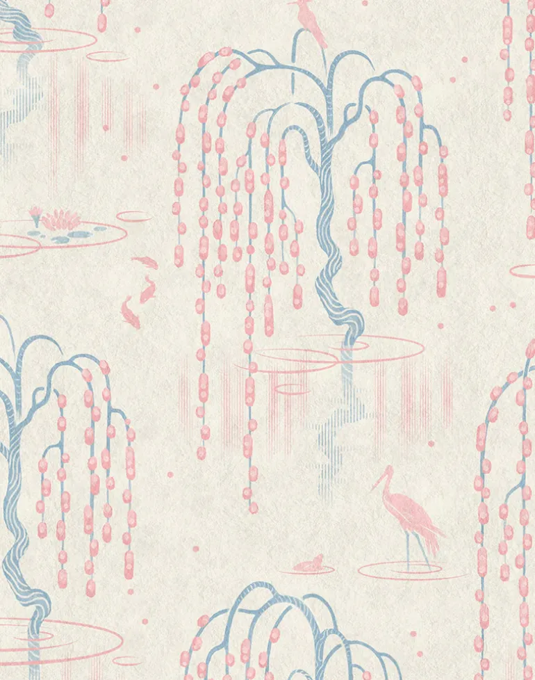 Kimono Cream – we love this as a bedroom wallpaper with soft shades of cream, blue and pink.