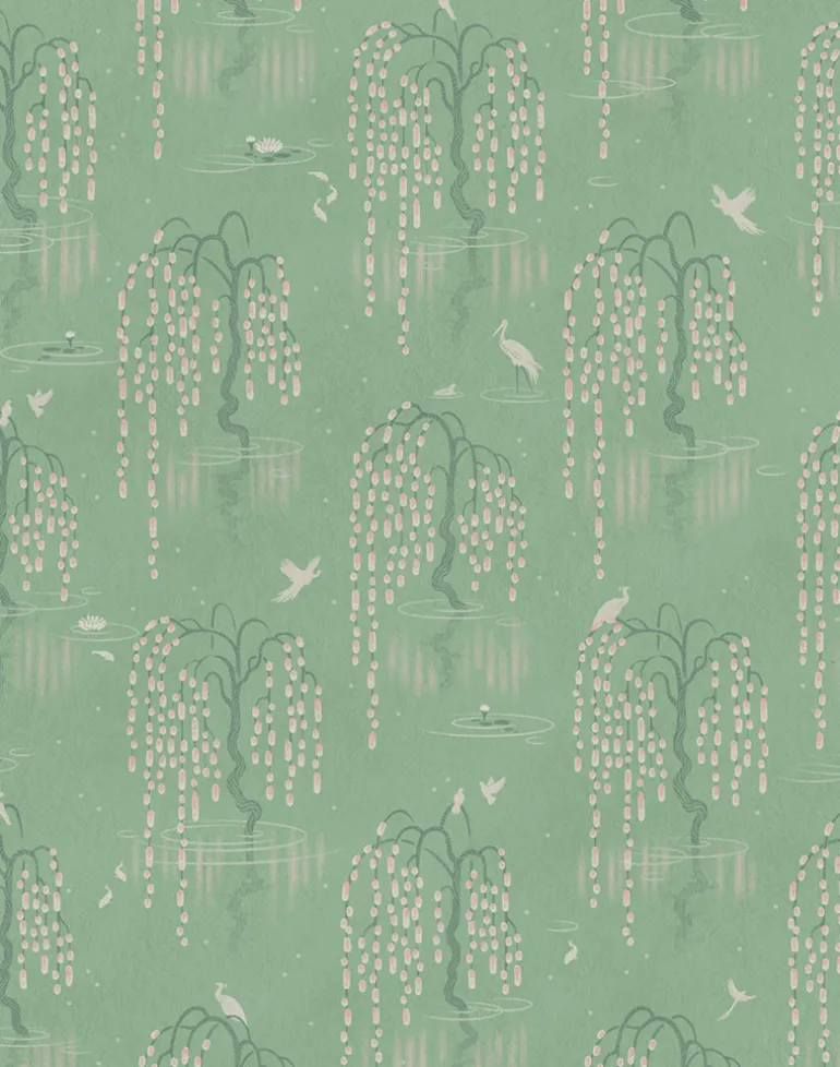 Willow Green – a refreshing green base with accents of pink and cream make this a perfect wallpaper for bedroom walls. Pair it with vintage pieces for a beautifully eclectic interior.