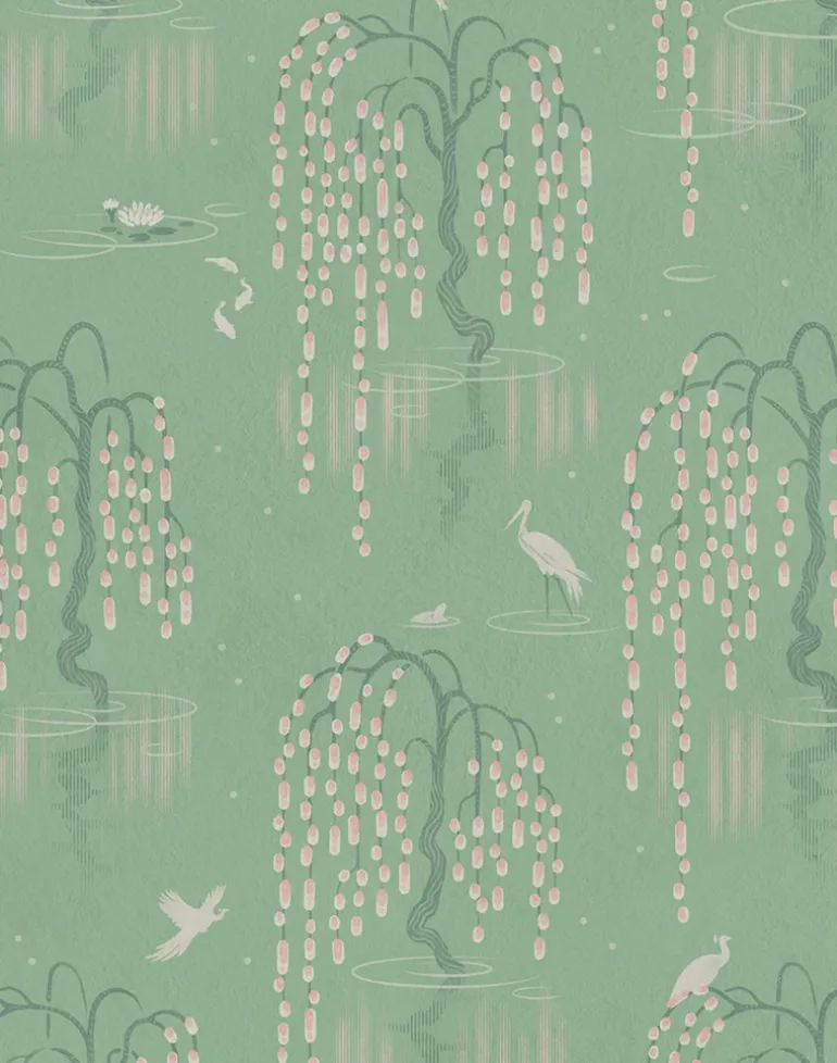 Inspired by the Japanese gardens of Holland Park and featuring delicate illustrations of cherry blossoms, lotus flowers, exotic birds and koi carp. Printed on luxuriously textured paper with a subtle and sophisticated sheen, create an oasis of calm that transports you to watercolor world.