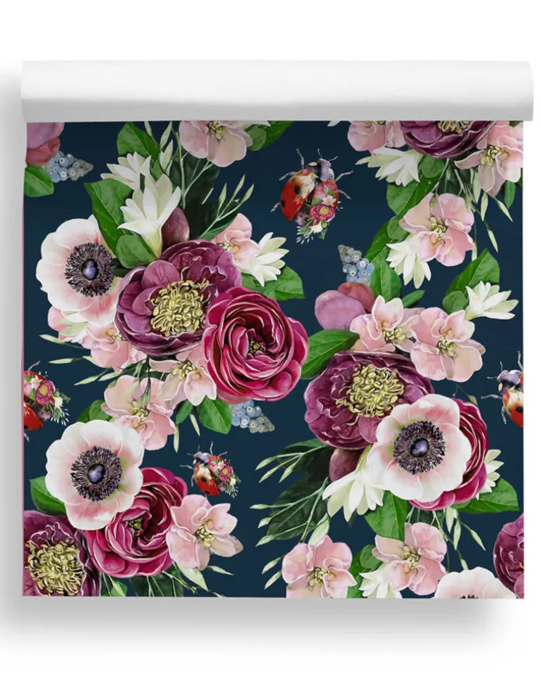 Mixed Ladybird Dark Blue Wallpaper is a new addition to Lola Design’s beautiful wallpaper range.