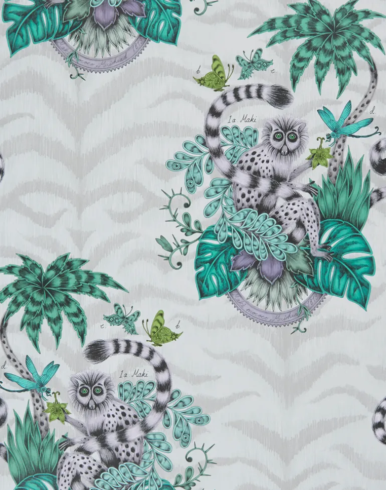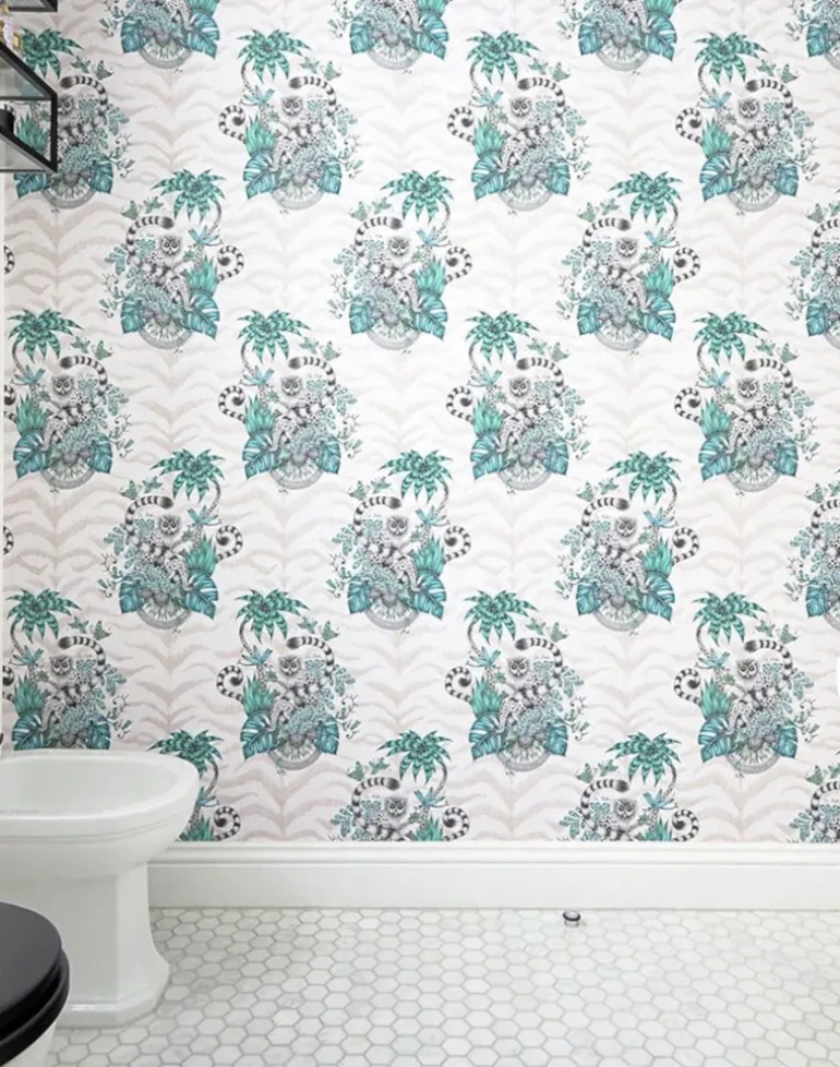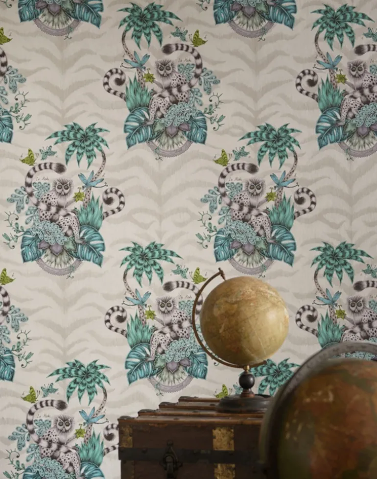 The Lemur Wallpaper is part of our magical Animalia collaboration with interior experts Clarke & Clarke. This design features a quizzical lemur within a cluster of beautiful tropical foliage. This vibrant wallpaper will inject an air of exoticism to your home in a flash, featuring an array of brilliant blues, turquoises and greens upon a subtle, neutral background.