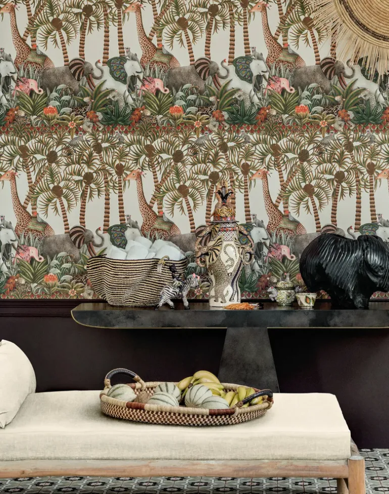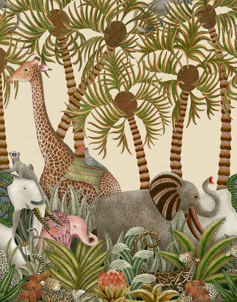 Immerse yourself in the majesty of Africa with Ardmore’s Letaba March Wallpaper. This luxurious design features a captivating parade of wildlife, each creature beautifully adorned with intricate patterns reminiscent of traditional Zulu beadwork. Evoking the vibrant spirit of the Letaba River, this wallpaper transforms any room into an elegant, exotic retreat. Crafted with exquisite attention to detail, it’s an artful celebration of nature and culture, perfect for discerning interiors seeking a touch of opulence.