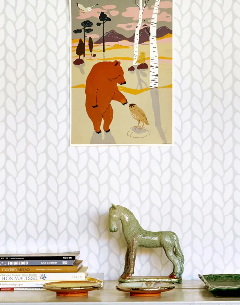 The wallpaper is made in Sweden and printed on non-woven material with colors that are water-based and completely free from solvents and PVC. Excess color is managed in an environmentally sound manner and paper waste is converted into heat. The wallpaper has a very beautiful surface where you can feel the color structure with the bare hand.