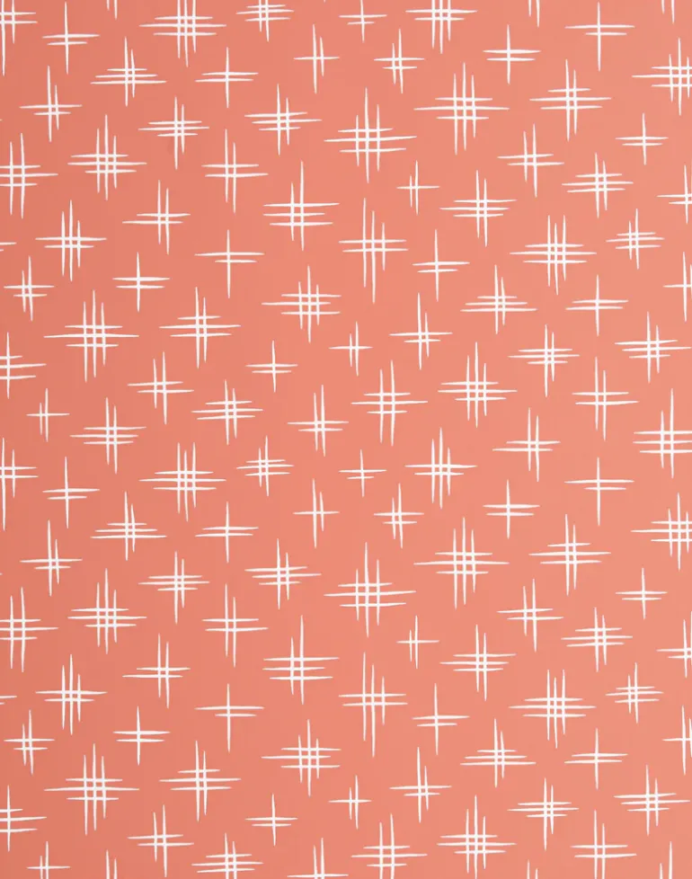 White illustration on a coral background