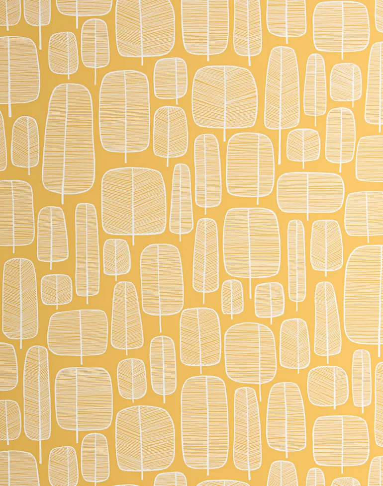 Intricate whimsical illustrations of small line drawn trees evolved from simple pen studies in a sketchbook. Each tree within the wallpaper width is unique, creating an even natural texture on your walls.