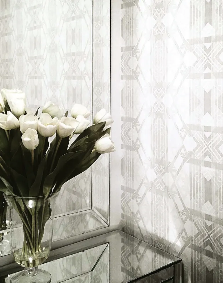 Echoing an age of unbridled decadence, this elegant Art Deco-inspired collection effortlessly merges the geometric lettering styles of British contemporary artist, Paris, with the innovate digital creations of east London designer Nosca Inc. This 17 Patterns collaboration pays homage to Paris’s infamous letter forms, with Nosca Inc developing repeat pattern ideas and visual concepts to produce new art forms which reach far beyond their original articulation. With its delicate framework structure, echoes of diamonds and architectural symmetry, this bold geometric collection delivers lavish ornamentation into both period and modern interiors.
