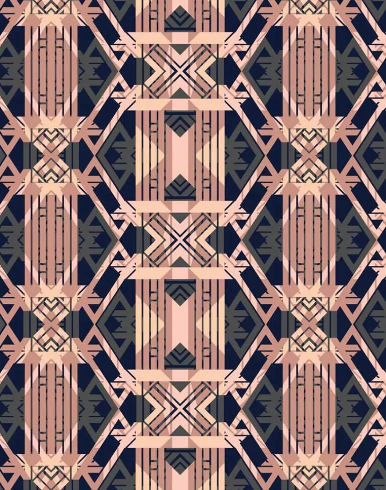 Echoing an age of unbridled decadence, this elegant Art Deco-inspired collection effortlessly merges the geometric lettering styles of British contemporary artist, Paris, with the innovate digital creations of east London designer Nosca Inc. This 17 Patterns collaboration pays homage to Paris’s infamous letter forms, with Nosca Inc developing repeat pattern ideas and visual concepts to produce new art forms which reach far beyond their original articulation. With its delicate framework structure, echoes of diamonds and architectural symmetry, this bold geometric collection delivers lavish ornamentation into both period and modern interiors.