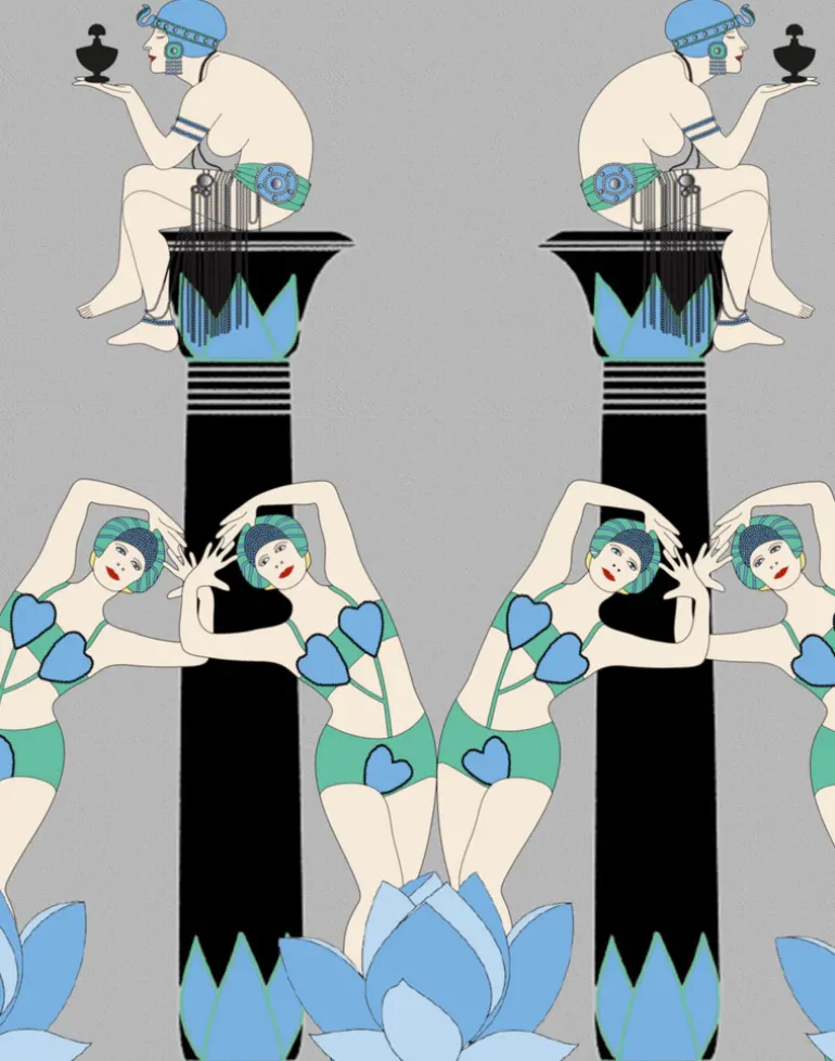 A striking Art Deco creative wallpaper design inspired by the Egyptian revival period in the 1920’s