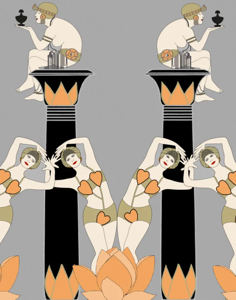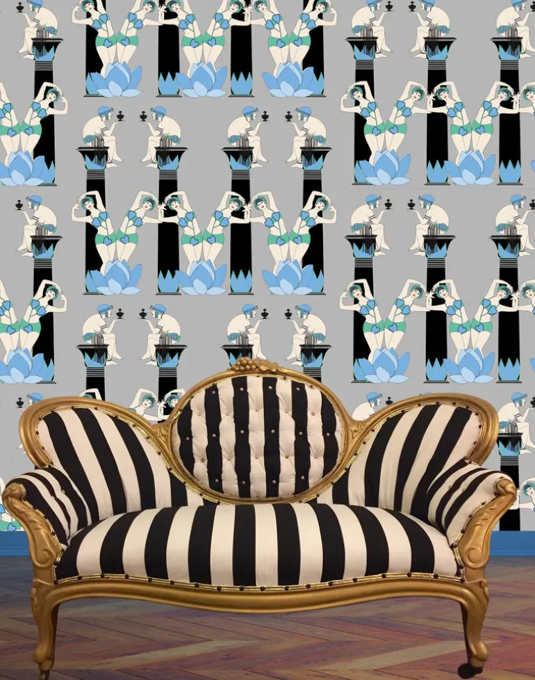 A striking Art Deco creative wallpaper design inspired by the Egyptian revival period in the 1920’s