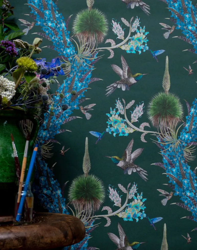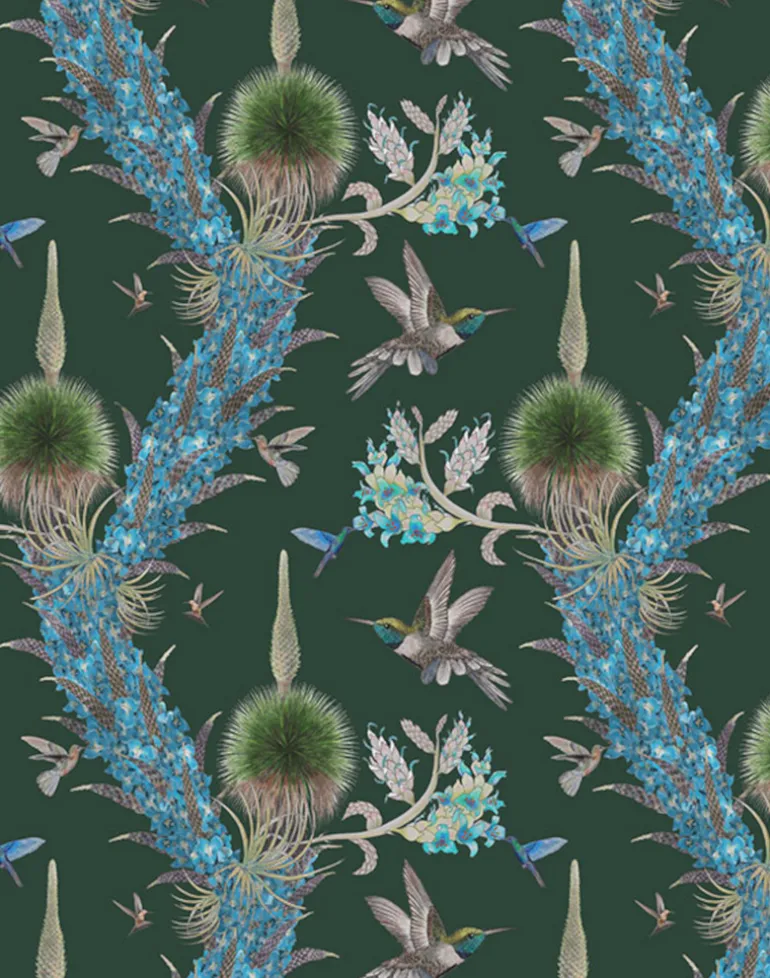 The contemporary design has quite an elegant structured style and a limited palate based around the blues and greens of the Puya flowers. With exquisite botanical detail, it builds upon the current passion in interiors for honouring the natural world. Furthermore, for every roll of wallpaper sold, 100m2 of critical wild habitat is preserved through World Land Trust.