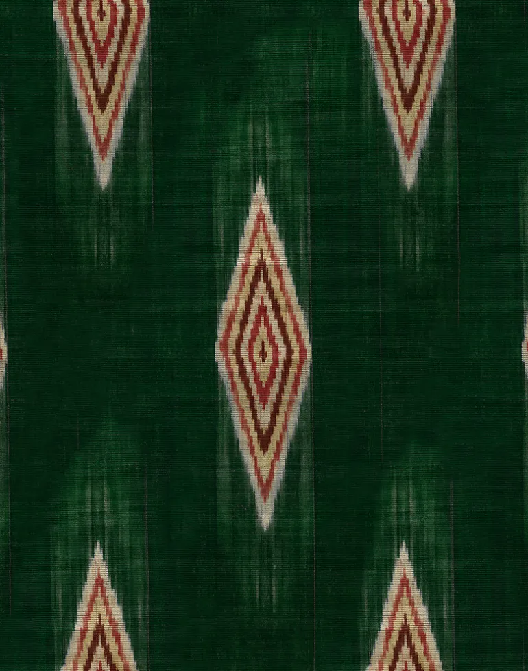 Luxuriate in the richness of hand sewn fabric with our diamond patterned MAIYSHA wallpaper which takes a painterly approach to timeless geometric shapes. Small diamonds are filled with colorful echoing outlines, each layer seemingly hand sewn and celebrating the perfect imperfections of traditional textile crafts, with the overall form surrounded by organic blurs representing thread on the back of the fabric. The soft Birch palette adds zing to a neutral space with its humble flashes of earthy reds and yellows.