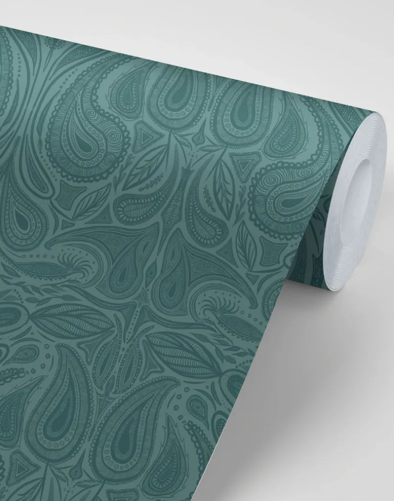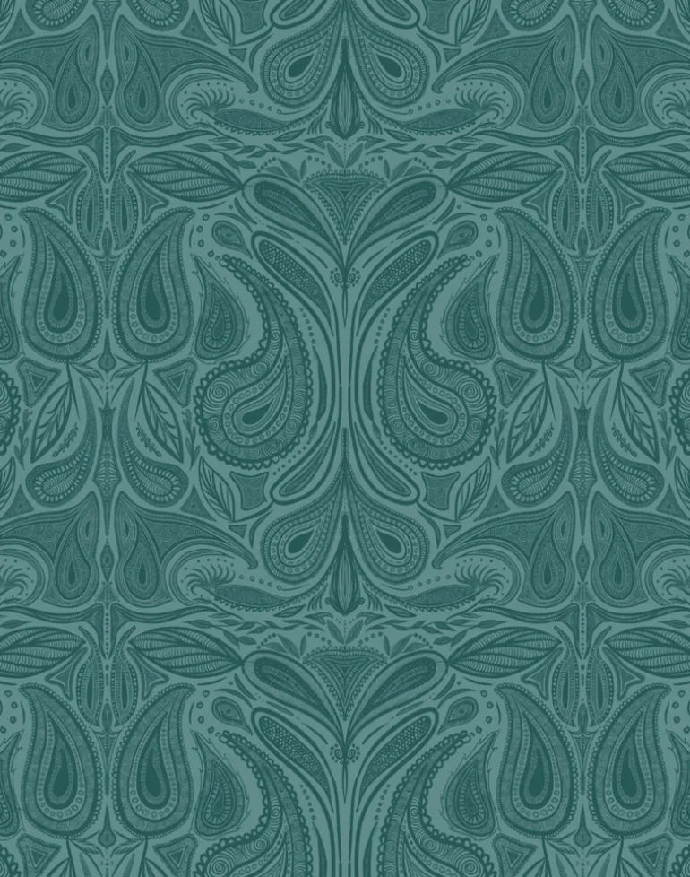 Inspired by Indian block prints this intricately hand drawn design creates a stunning ornamental pattern of paisley, botanical leaves and shapes. The classic paisley design is thought to have been a representation of a floral spray combined with a cypress tree.