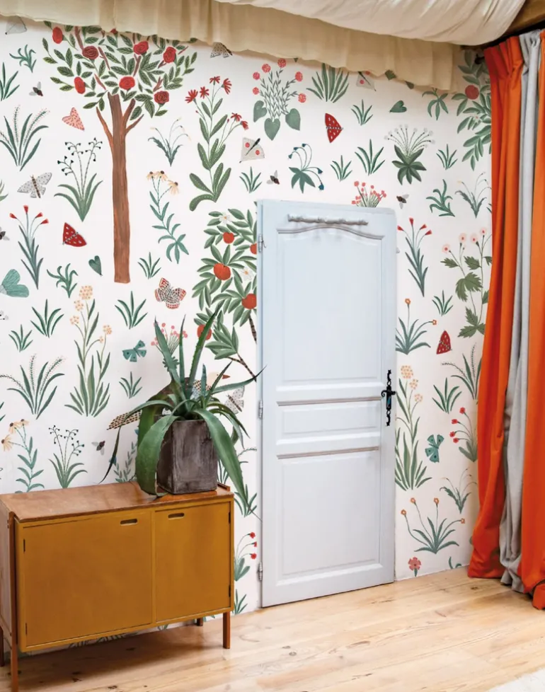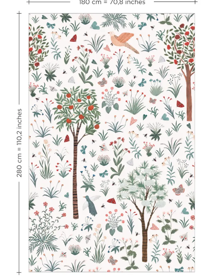 Millefleurs (thousand flowers) is a delicate and precious pattern, hand-painted with watercolor and gouache, a wallpaper like a modern medieval garden.