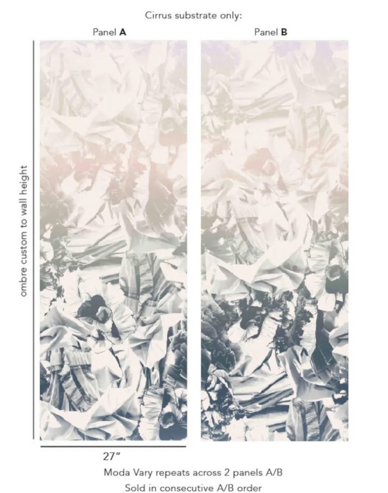 • Our Cirrus substrate is pre-coated, non-woven wallpaper with a smooth finish. Remarkable art is achieved on the Cirrus ground by virtue of its matte, consistent surface. A 1/2” overlap is designed into all rolls; it can be trimmed if desired.