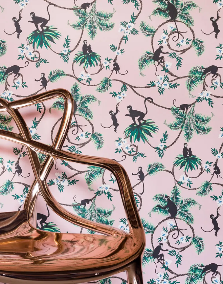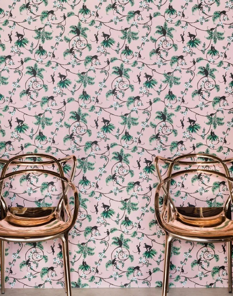 We’ve teamed up with Fashion Designer and self-confessed print addict, Tabitha Webb, taking two of her iconic designs from runway to wall. This vibrant all-over ‘Monkey’ print is available in dutch blue or pale pink.