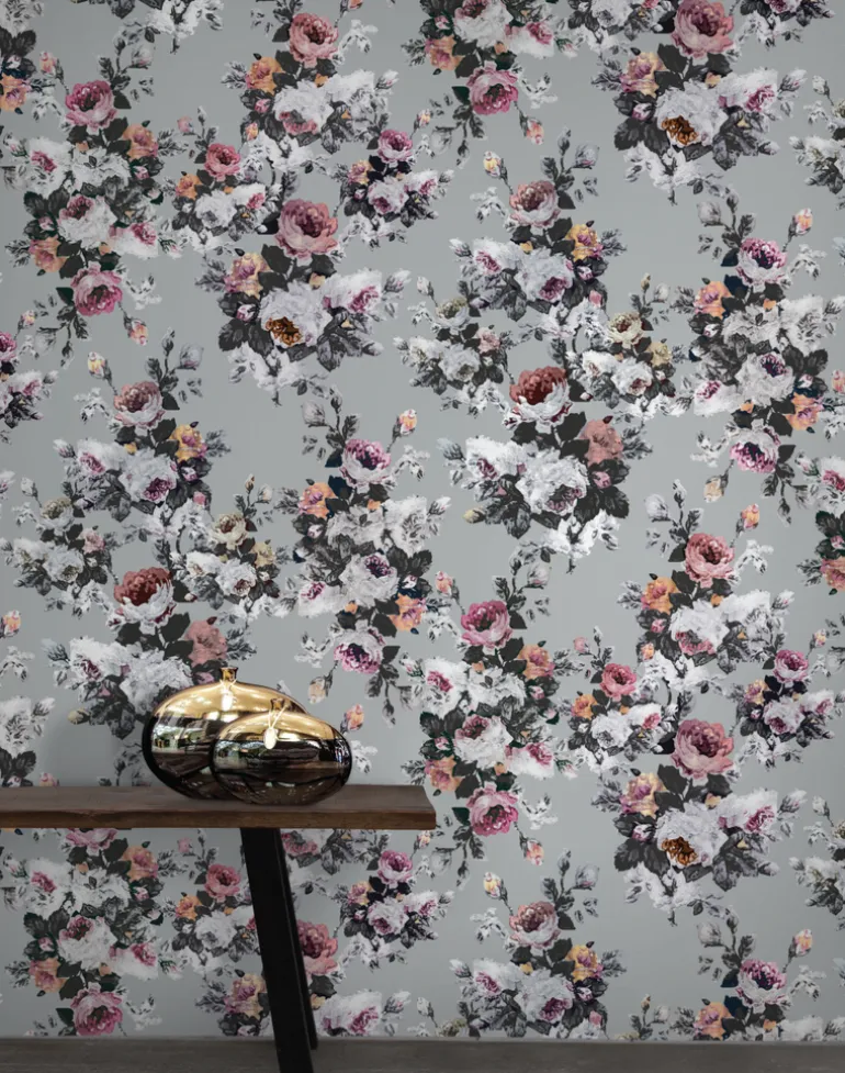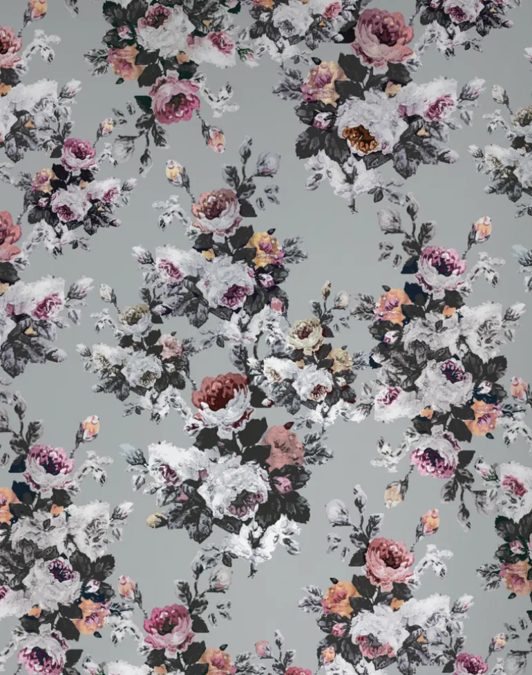 An unashamedly romantic wallpaper, Moody Bloom takes 19th century floral and rococo designs found during a renovation, and reimagines them for the modern boudoir.