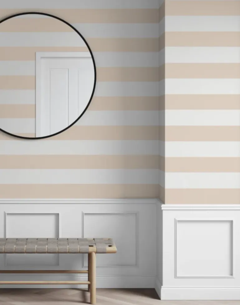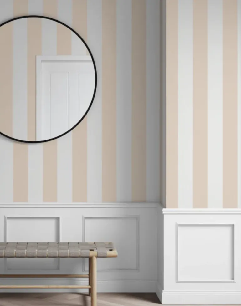 On this wallpaper we let the obvious design language of the block-stripe meet a newly awakened powder-pink nuance. The result? The best of two worlds. Cheeky and cuddly. If you want to leave a wall monochrome, match with Morning Blush or for a textile effect Morning Blush Tactile.