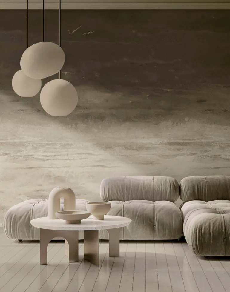 An original plein-air painting has been masterfully translated onto a high-quality non-woven wallpaper, enhancing every nuance of the artist’s brushstroke. Set across four highly usable colorways. Earth, Brown, Black, and Ocean.