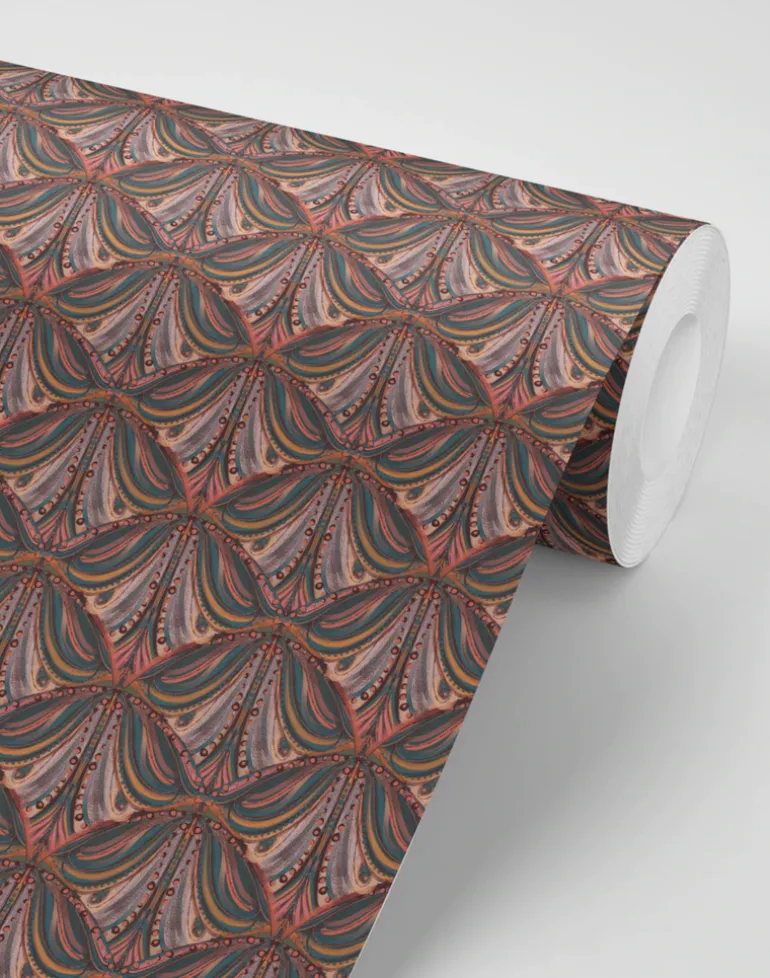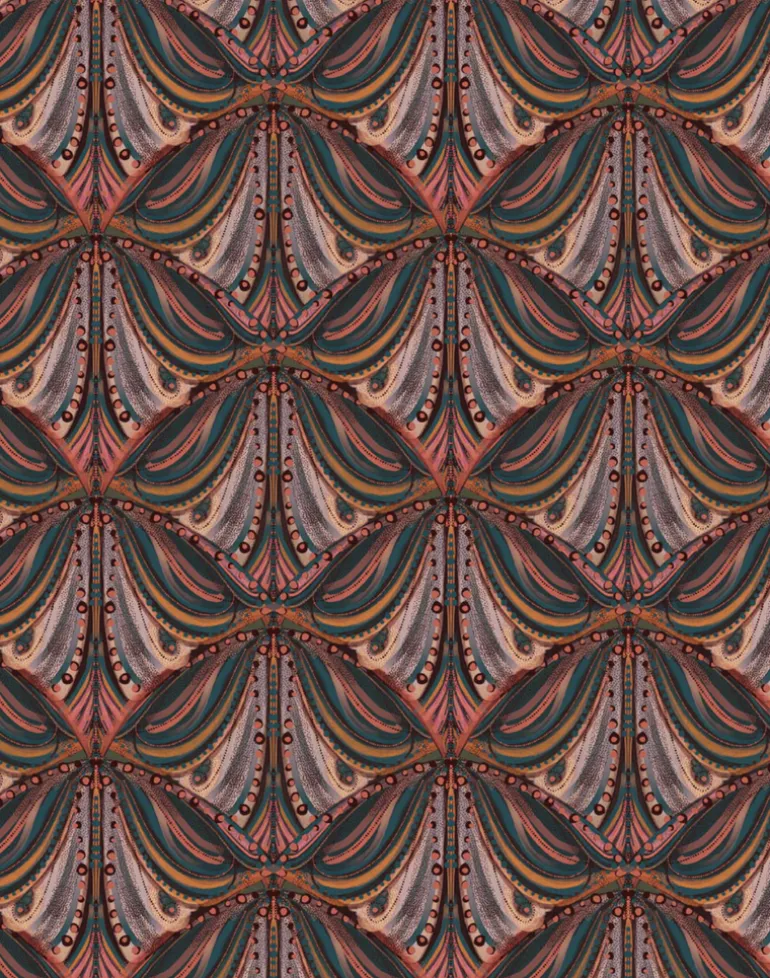 Did you know that India’s capital has the second largest concentration of Art Deco buildings in the world? Mumbai Deco, an intricate, hand-drawn scallop design in two spicy color combinations, celebrates the city’s charismatic take on this iconic architectural style rich in decorative motifs.