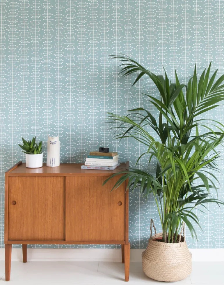 Originally inspired by mid-century science based design, abstract organic forms rise grow from slim vertical stems. The wallpaper is printed using a technique similar to block printing giving a subtle texture, with a fresh color palette adding new life to vintage forms. All of our prints were originally drawn by hand and developed in our own studio.