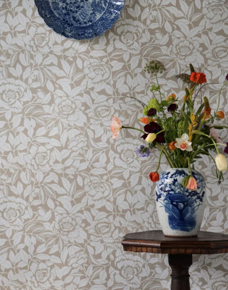 The peony is wonderfully short in its bloom, classically timeless in this pattern.