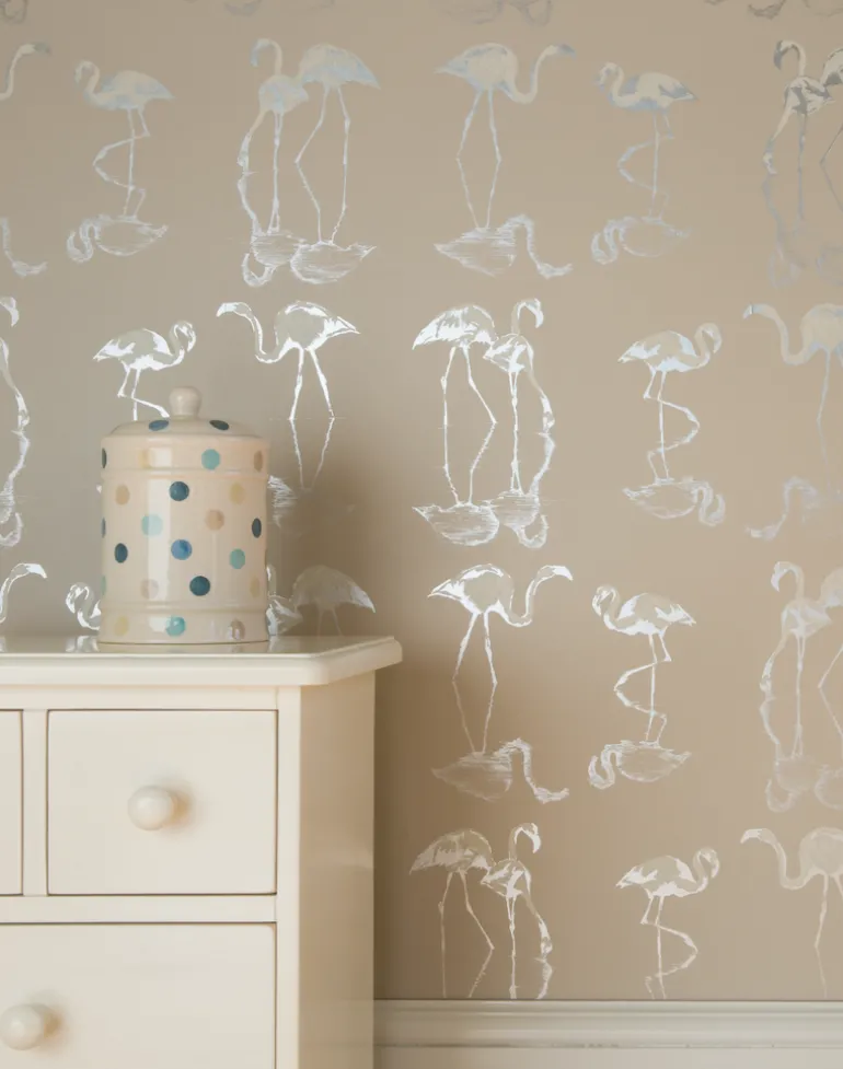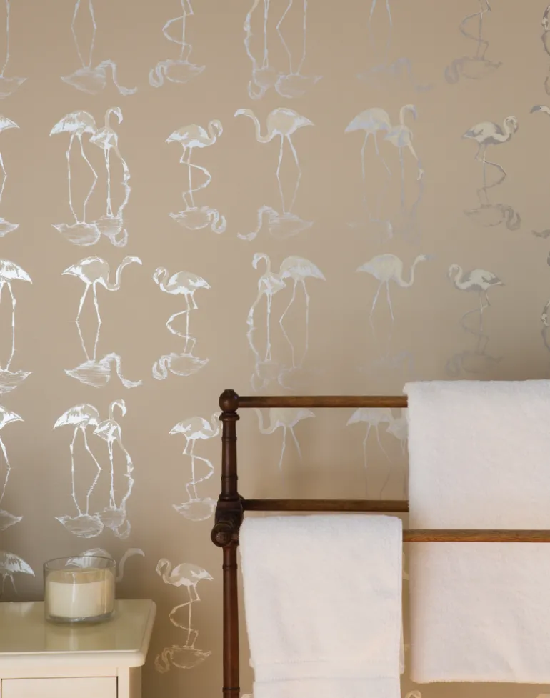 Nakuru is a bold and flamboyant design. We have specifically provided the market with a variety of colorways for this pattern, to offer our clients a wallpaper than can work in a range of different rooms and color themes. The striking contrast between the silver and darker tones, alongside the subtle beige and cream hues, makes this design versatile and easy to work with.